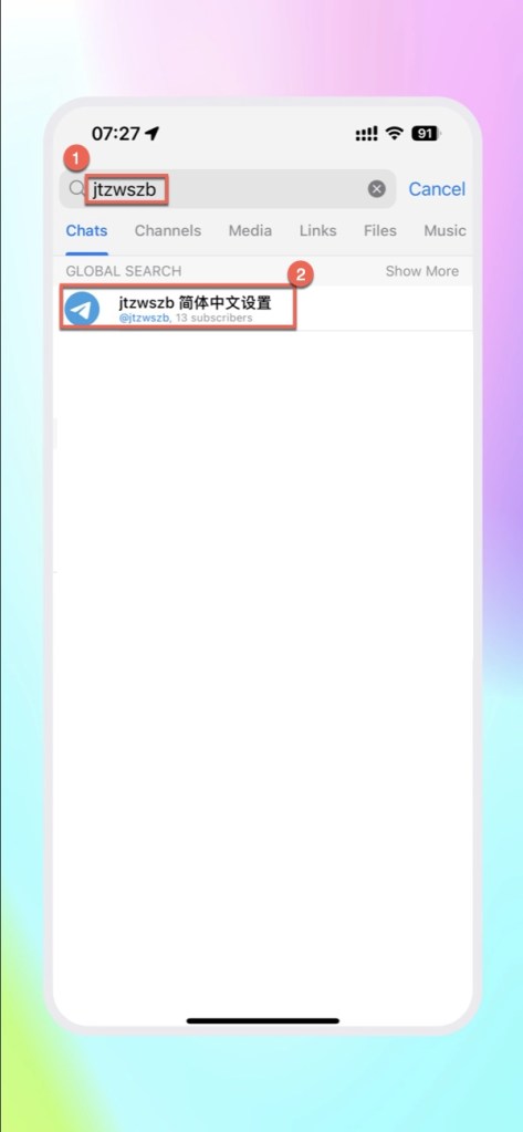 jtzwszb,这是“简体中文设置包”的首字母缩写。请确保输入的内容与上述字母完全一致;或者直接通过点击链接 https://t.me/jtzwszb 进入中文汉化频道。 - 在搜索结果中,你会看到一个名为“简体中文设置”的频道。点击进入该频道。请注意,频道名称必须与搜索内容完全一致,以确保你进入的是正确的频道;