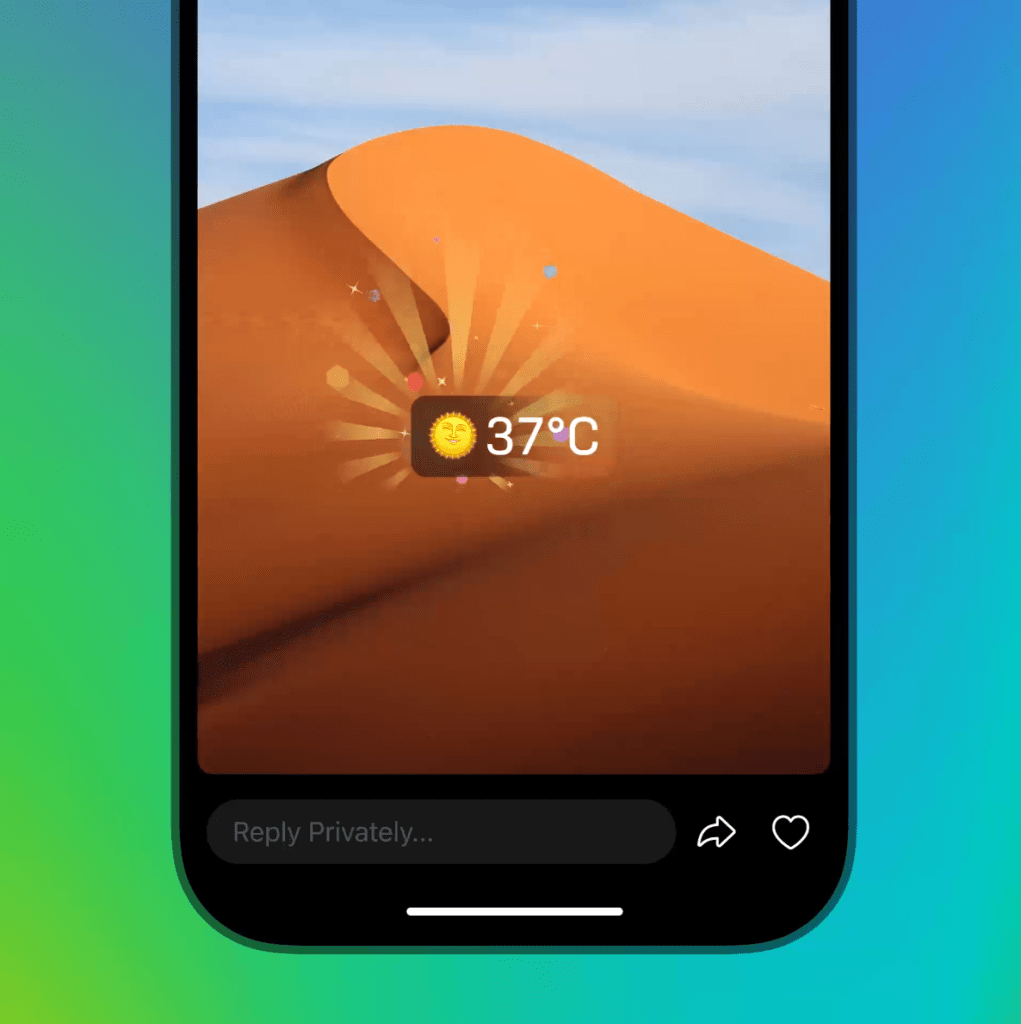 用户现在可以在故事中分享天气,方法是将动画小部件添加到阳光明媚的自拍照到滑雪坡等一切事物中。