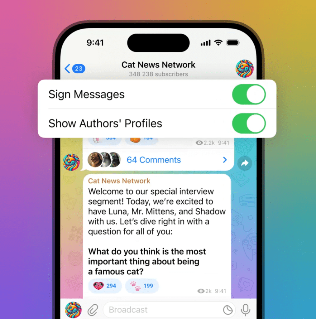从今天开始,您可以使您的频道看起来更像一个群组,管理员可以在其中以自己的个人资料形式发布帖子- 甚至可以以其他频道形式发布帖子。