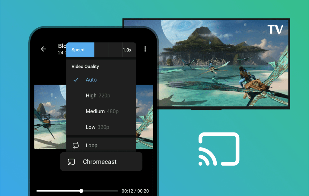 Android用户现在可以直接将视频投屏到Chromecast设备——无论您是和朋友观看搞笑视频还是在会议中展示重要内容,都可以在大屏幕上享受!
