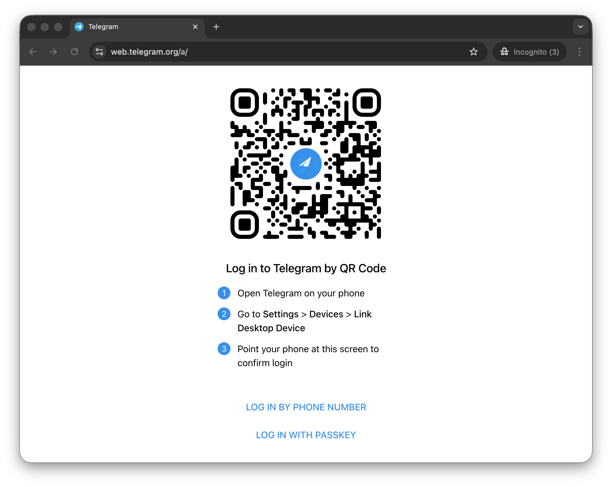 访问官方唯一域名:https://web.telegram.org。
